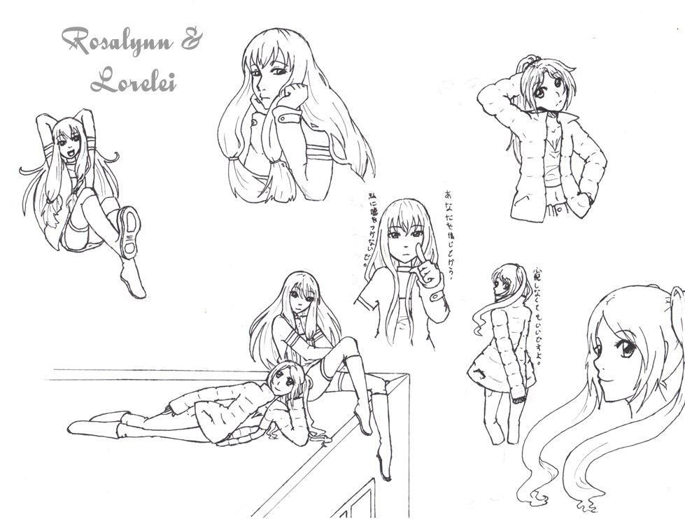 I'm going to guess that Lorelei is the twin tails (hair style) and Rosalynn is the other.