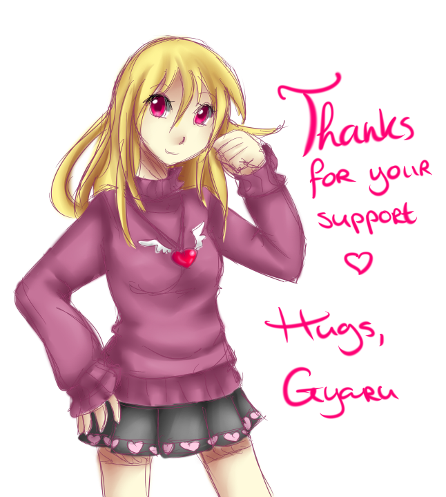This is for the RnT-group members, but also for you guys :) Because I wouldn't even be an dA if it wasn't for you guys and your support. Sooo, even though it's a doodle and epically lame, I hope you like it anyway. I promise to make a better drawing for you all soon :D I'm sorry for being too lazy to change "Gyaru" to "Hiki"